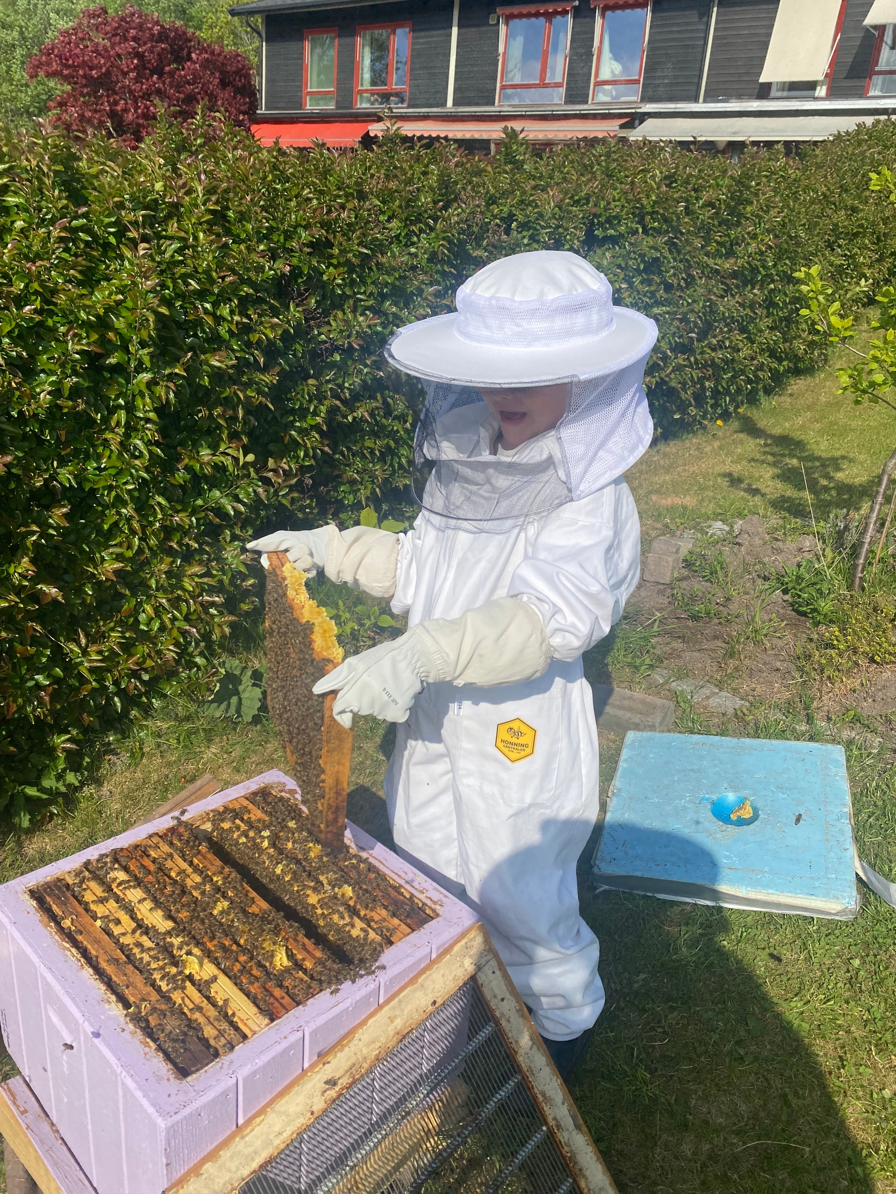 Med stor lidenskap, omsorg og interesse pleier vår lille birøkter Olivier våre seksbente venner i hagen